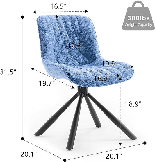 Mid Century Modern Dining Chairs Set of 2, Upholstered Dining Room Chairs with Sturdy Metal Legs, Boucle Armless Accent Side Chairs for Kitchen, Living Room, Lake Blue
