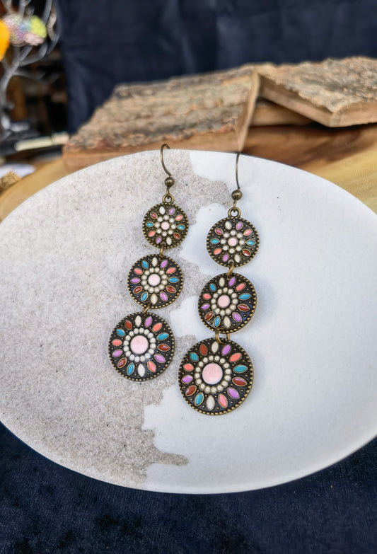 OGE03 Orange Tribal Styles Boho Earrings 3 Pairs Set