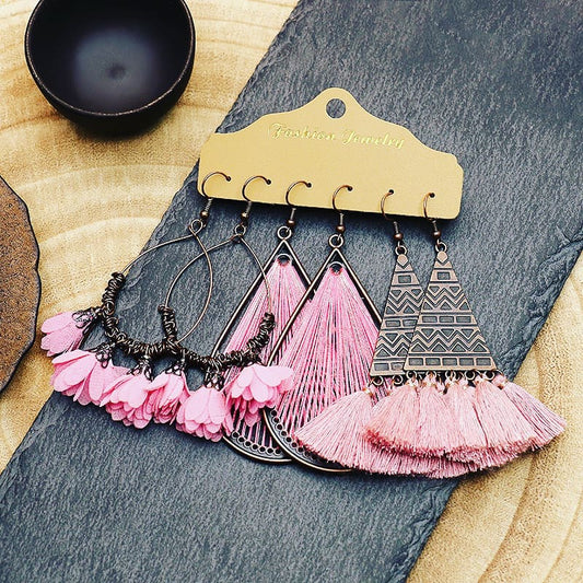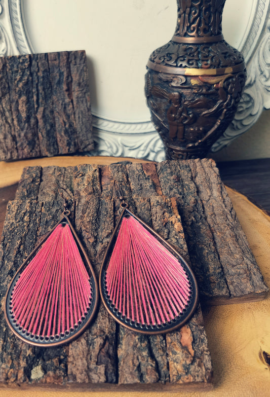 PEP02 Very Pretty Pink Tear Drop String Earrings