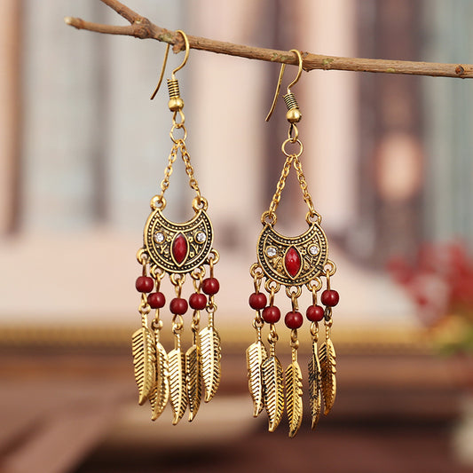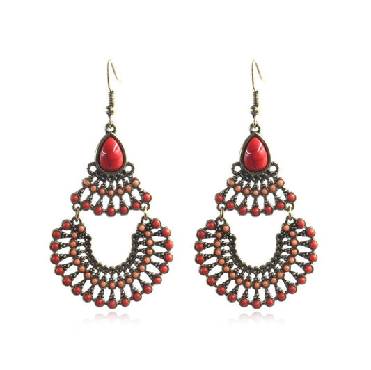 RRE02 Ruby Red Tribal Bohemian Earrings