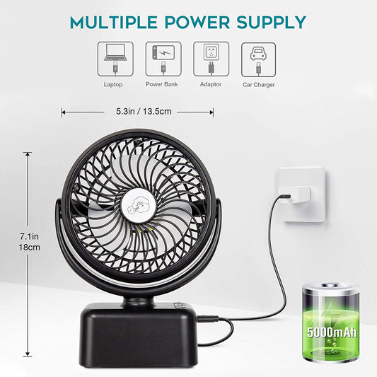 Portable Stroller Camping Fan with LED Light, Oscillation & Built Rechargeable Battery 5000mAh
