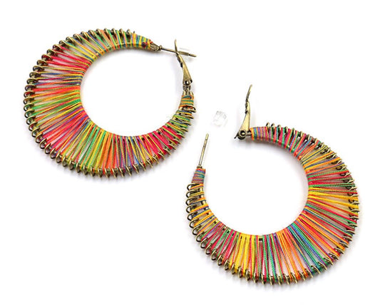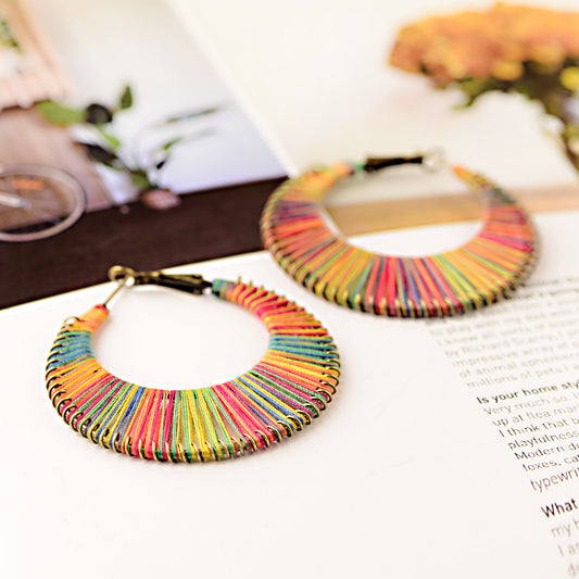 BOHO Rainbow Colorful String Hoop Earrings CME02