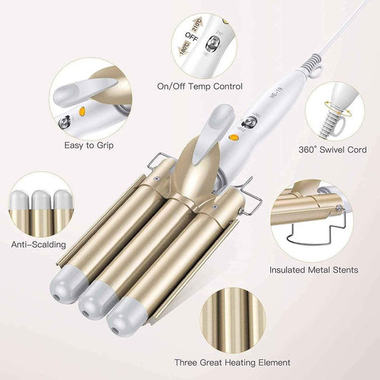 Beauty Hair Curling Iron Wand, 3 Barrels 1 Inch Ceramic Tourmaline Coating Hair Crimper