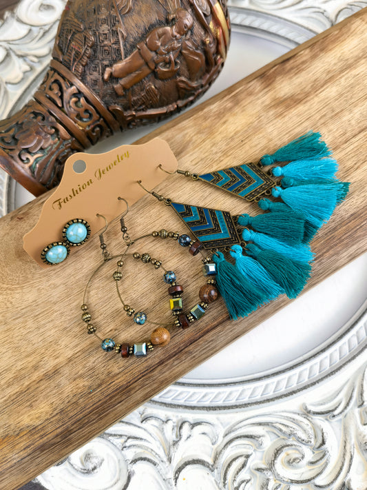 Blue/Teal Boho Vintage Ethnic Tribal Earrings BBE03