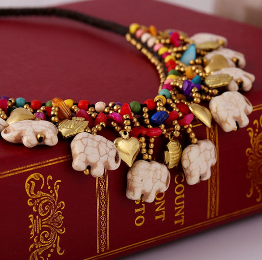 Boho Bollywood Style Heart & Elephant Necklace ELN01