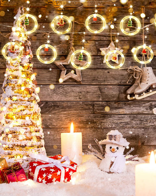 Christmas Window Lights Indoor Decorations, 120 Led Lights 9.8 ft Round Santa Fairy String Lights
