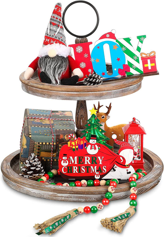 Christmas Tiered Tray Decoration Set Wood Table Centerpiece Signs Gnomes