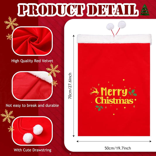 2 Pcs Christmas Red Velvet Santa Claus Bags with Cord Drawstring Extra Large Red Velvet Santa's