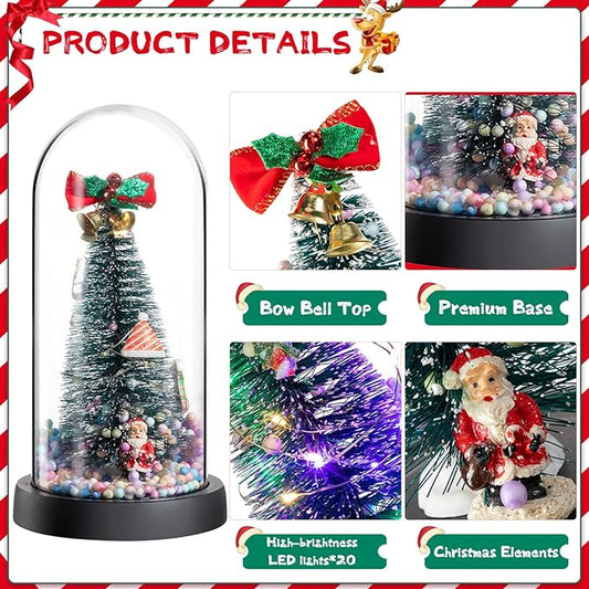 3 Pcs Mini Christmas Trees in Dome Snow Flocked Tabletop Christmas Tree with 20 LED Lights Battery Powered