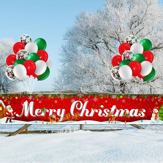 Christmas Banner Decoration Set Merry Christmas Fence Banner with 35 Pieces Latex Balloons 8.2 x 1.5 Ft