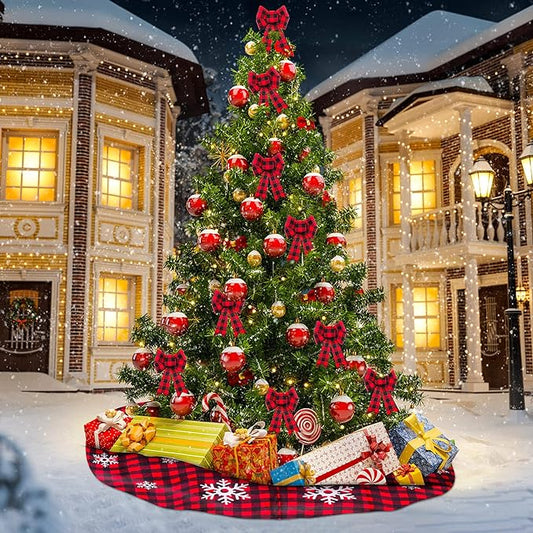 Christmas Tree Skirt and Christmas Bows Buffalo Plaid Tree Skirt Christmas Decoration