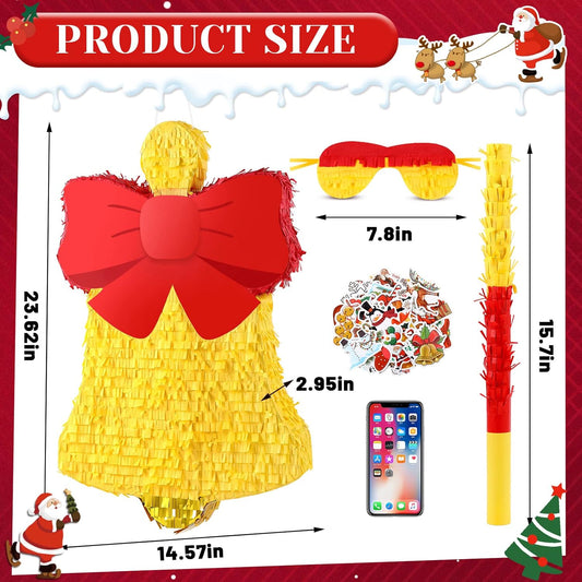Large Christmas Pinata Bell Pinata Christmas Tree Pinata Christmas Tree Ornaments Xmas Pinata for Party Supplies with Blindfold Confetti for Xmas Decor