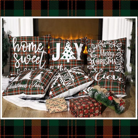 6 Pcs Christmas Pillow Case Christmas Pillow Cover Holiday Decor 18 x 18 inch Throw Pillow Case