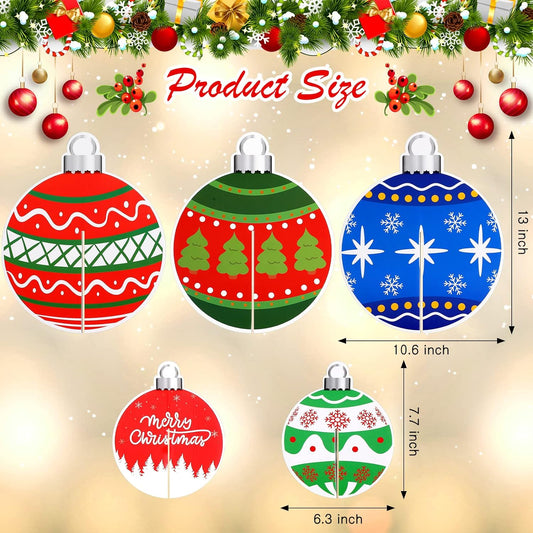 3D Christmas Ball Yard Sign Xmas Tree Lawn Sign with Stakes Christmas Snowflakes Garden Patio Sign