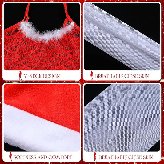 Women's Santa Christmas Costume Set,Sexy Dress Red Santa Babydolls Chemises Pantyhose Santa Hat Sockings and Underwear for Women