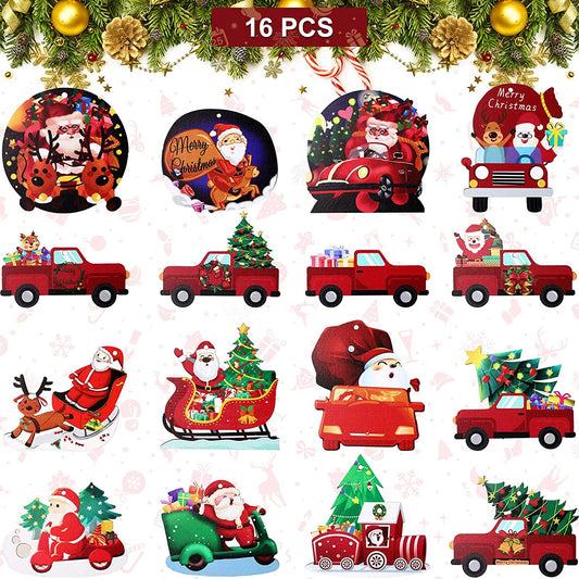 16 Pieces Christmas Wood Truck Ornaments Christmas Red Truck Ornaments Christmas Truck Hanging Crafts Wooden Ornament Xmas Red Truck
