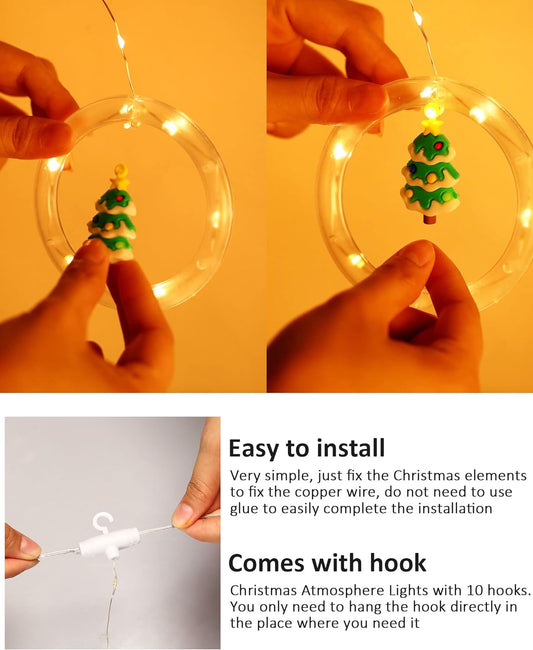 120 Led Lights 9.8ft Christmas Window Lights Indoor Decorations Round Santa Fairy String Lights
