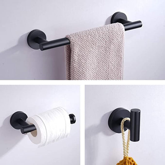 Bathroom Towel Bar, Toilet Paper Holder, Accessory Set Towel Hooks Set Matte Black SUS304