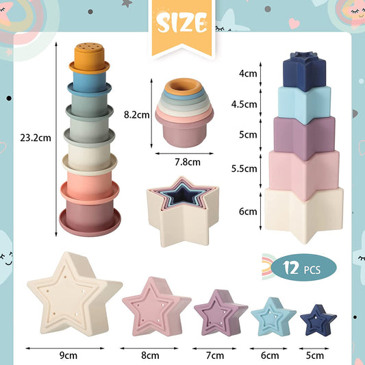 2 Sets Stacking Cups Toy and Nesting Stars Toy, Nesting Cup Montessori Stacking Toy