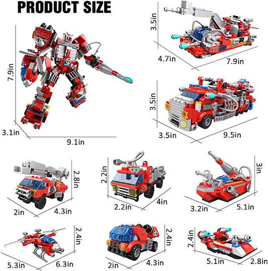 STEM Building Toys for Kids 9 in 1 Fire Robot Building Toy, Build Brick Set Rescue Helicopter Boat
