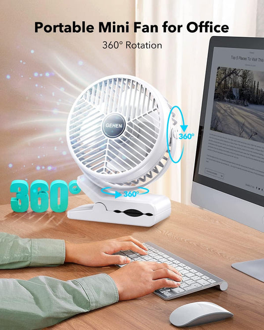 Portable 3-Speed Clip-on Fan with Sturdy Clamp 10000mAh Battery-Powered Clip Fan Rechargeable Ultra-Quiet for Bedroom Office Camping & Stroller