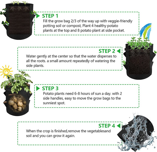 3 Pack Heavy Duty 10-Gallon Garden Growing Bags