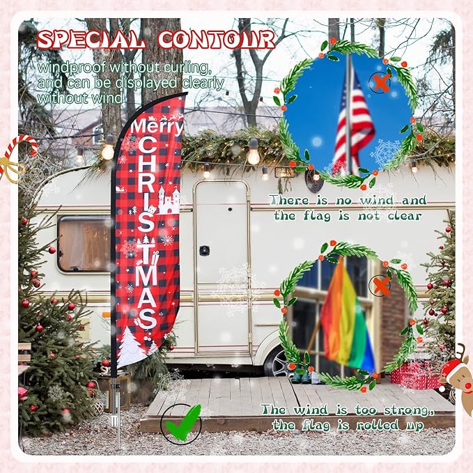 Wide Applications: red black plaid swooper flag banners are suitable for your Christmas, Christmas celebrations, also ideal for a Christmas party, Memorial Day, New Year party, birthday and so on