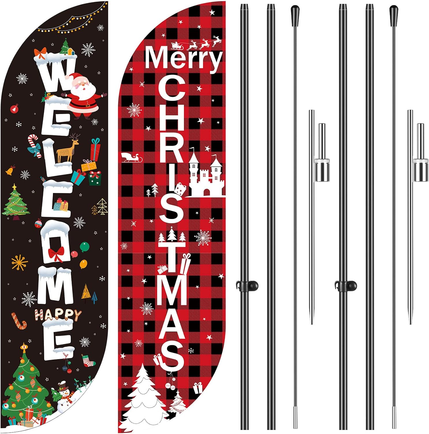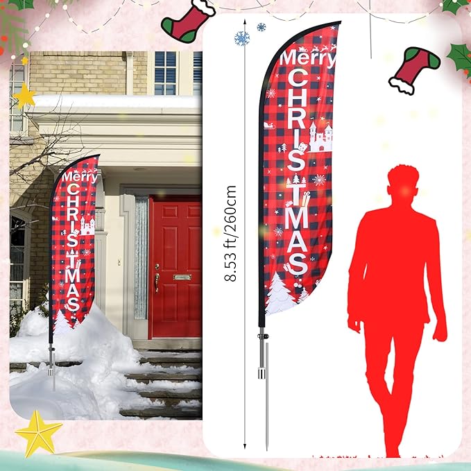 9.2ft Christmas Outdoor Decoration Flags 2 Packs Christmas Feather Flag Red Black Plaid Xmas Flag