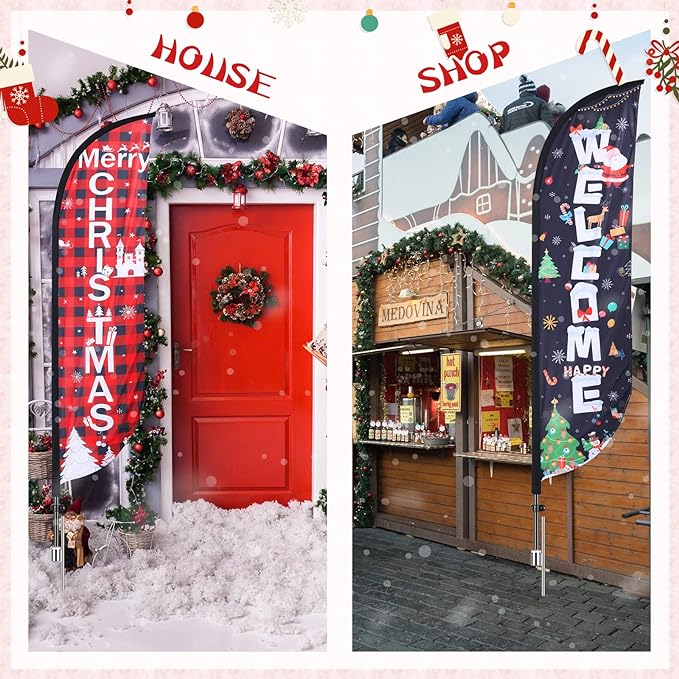 Our Christmas swooper advertising flags are charming and can help you attract attention. It's one of the good ways to boost your business. Don't hesitate to use it to decorate your garden, shop, lawn etc.